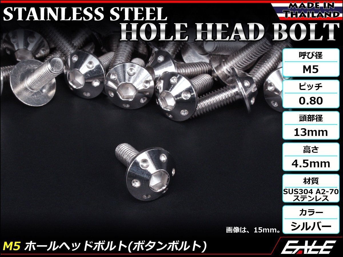 > M5×15mm P0.8 ホールヘッドボルト シルバー ボタンボルト ステンレス削り出し カウルやパネル スクリーン などの外装品に TR0047