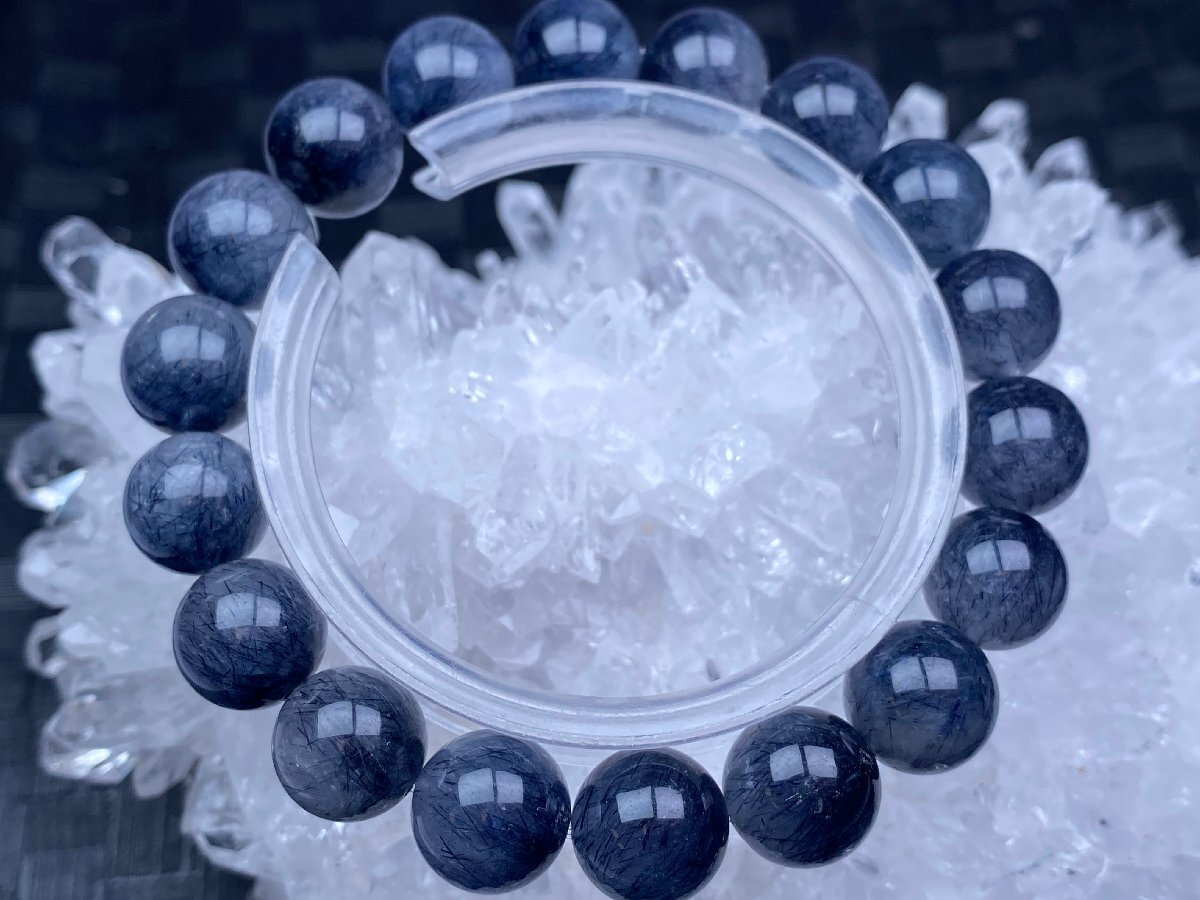 - 即決 0613k007 天然石★【65Aブルールチル&デュモルチェライトインクォーツ共生】★ブレス 11.5-12mm(新品)