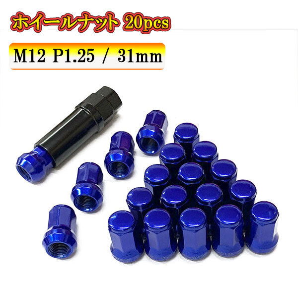 - スチール ホイール ナット ロックナット 袋ナット ホイールナット サイズ 31mm M12 P1.25 車 ドレスアップ 20pcs ブルー