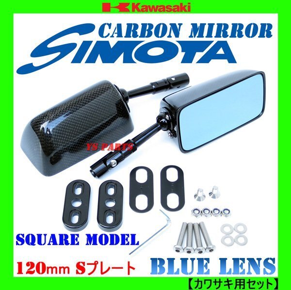 - 【超軽量リアルカーボン】カーボンミラー角型/ブルーレンズ/S/120mm ZX-10R/ZX-6RR/ZX-9R/ZX-7RR/ZXR750[フィッティングプレート/ボルト付]