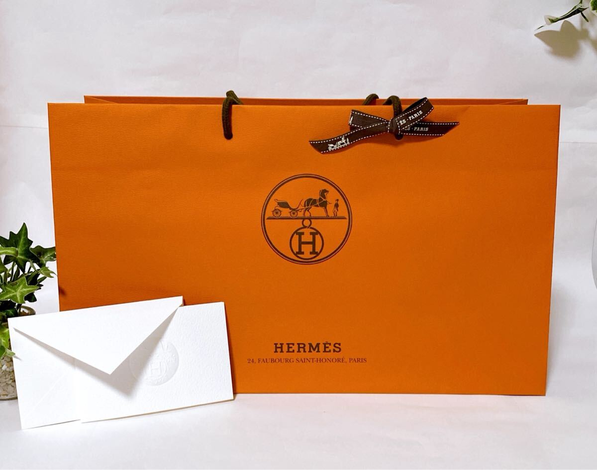 - エルメス 「HERMES」ショッパー 封筒カード付き (6007) 正規品 付属品 ショップ袋 ブランド紙袋 シューズ箱サイズ バッグ可 折らずに配送