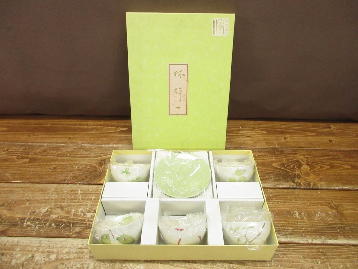 > 【WD-8427】即決 未使用 林静一 はるか 茶菓揃 絵変わり 柄違い 湯呑み5客/受け皿5枚 セット Aito 和食器 東京引取可【千円市場】