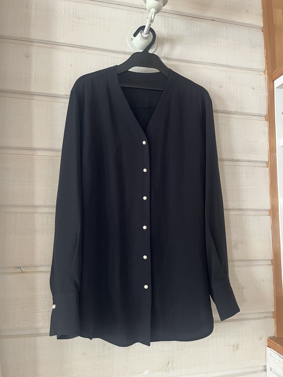 - ☆ニジュウサンク23区 パールボタン ブラウス シャツ 長袖 ブラック☆