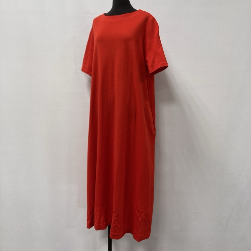 > ENFOLD/エンフォルド/コットンクルーネック/Aラインカットソーワンピース/300CS283-3140/レッド/サイドポケット/ロングワンピース/マキシ丈