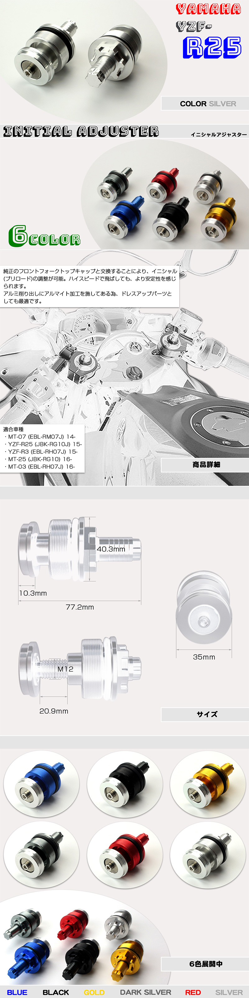 > YZF-R25 YZF-R3 MT-07 MT-03 MT-25 イニシャルアジャスター フロントフォーク プリロード 調整に シルバー S-703-S