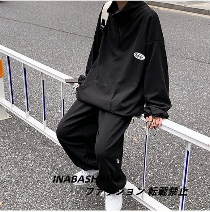 - ハーフジップ パーカー 2点セット スウェット上下セットアップ メンズ スウェットパンツ カジュアル スポーツ 部屋着 ゆったり大きいサイズ