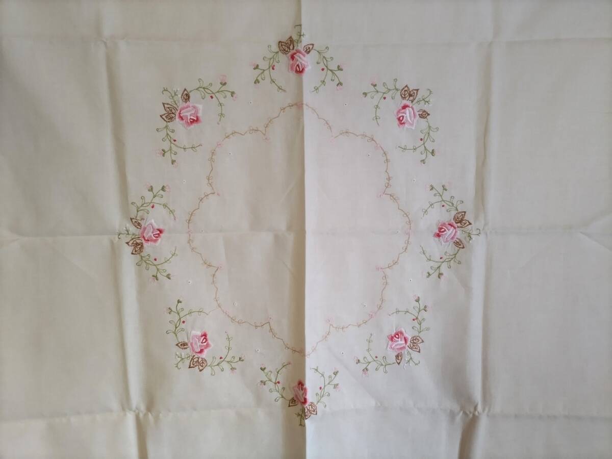 - 英国ビンテージ 刺繍 テーブルクロス 花柄 花模様 イギリス アンティーク調