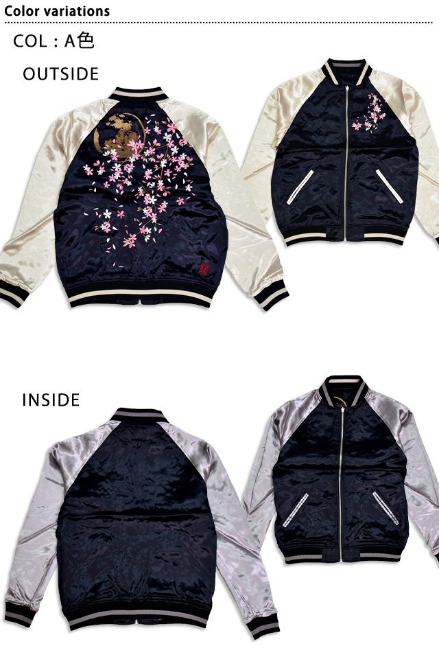 - 月光桜リバーシブルスカジャン◆絡繰魂 A色 XLサイズ 253145 和柄 和風 刺繍 さくら スーベニアジャケット
