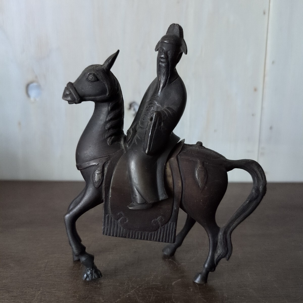 - 中国古玩 のったり 在銘 銅製 馬上賢人 香炉 置物 古銅 骨董 中国美術 650g