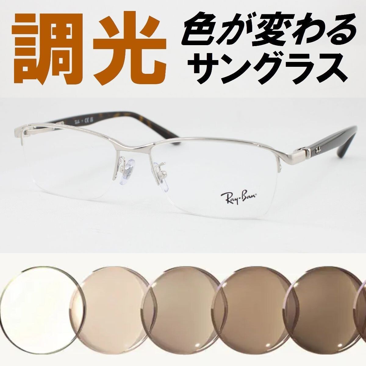- Ray-Ban レイバン RX6501D-2595 ライトブラウン調光サングラス 度なし UVカット伊達メガネ ナイロール ハーフリム アジアンフィット