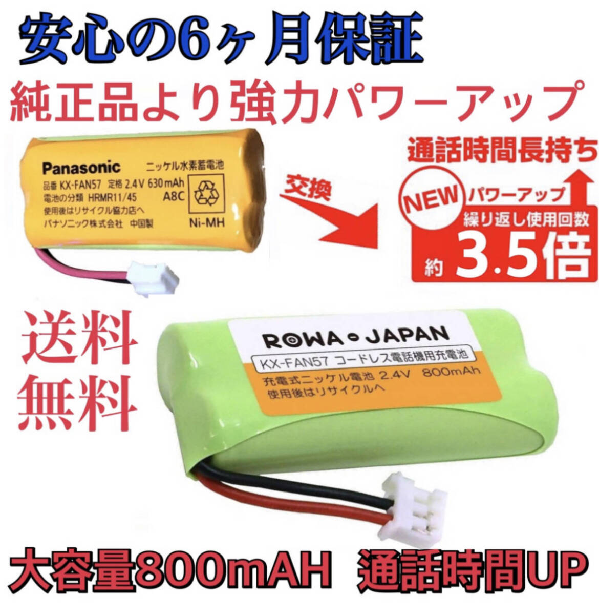 > ★KX-FAN57 BK-T412 ワイヤレス子機VL-WD614 VL-WD616 VL-WD622 VL-WD623パナソニック対応インターホン純正品より大容量長持ち★★★