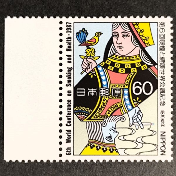 > [25090429]【第6回喫煙と健康世界会議記念】単片「トランプで描く喫煙と健康のイメージ」60円 1987年発行 美品