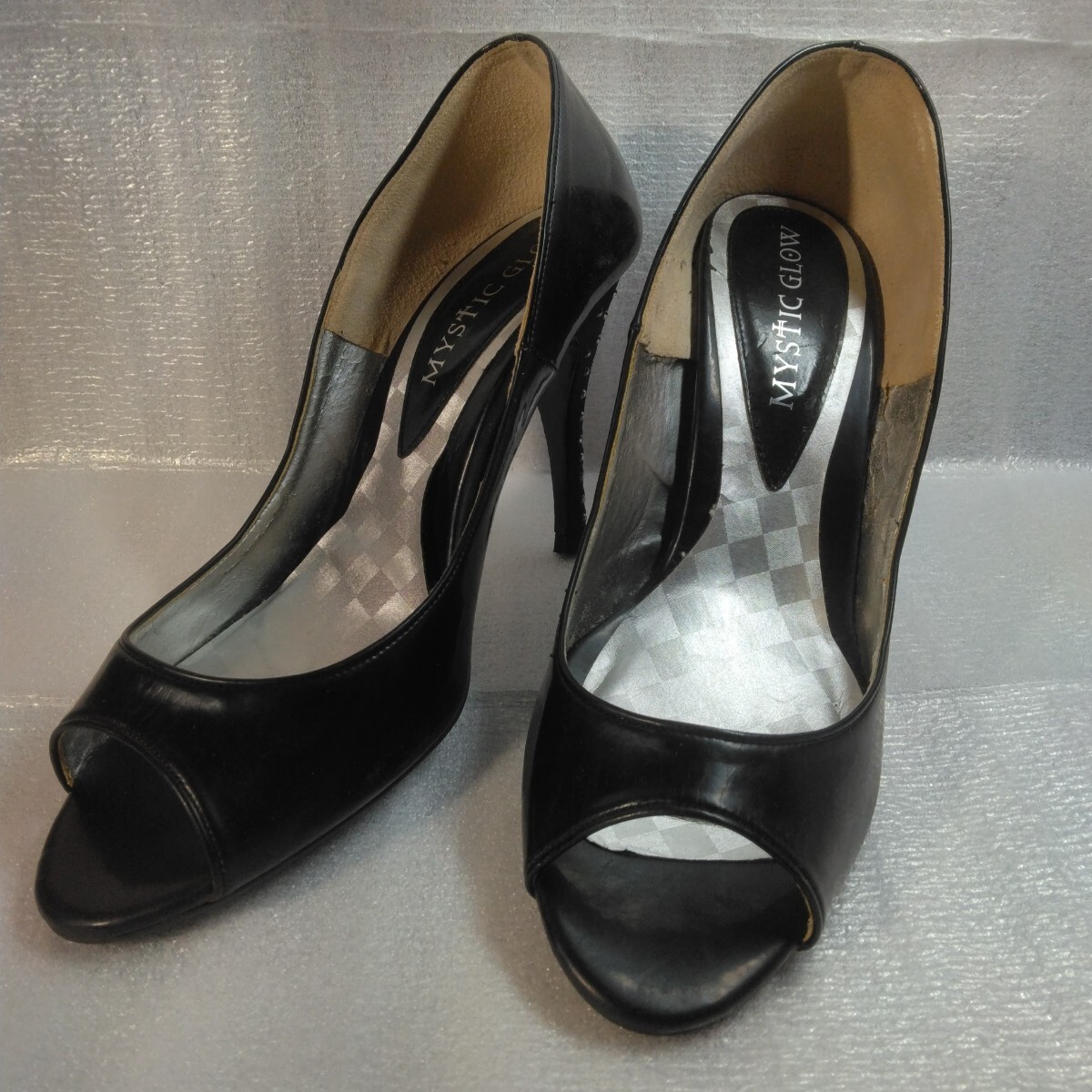 - エナメル オープントゥー パンプス 24.5cm ブラック ハイヒール MAMIAN