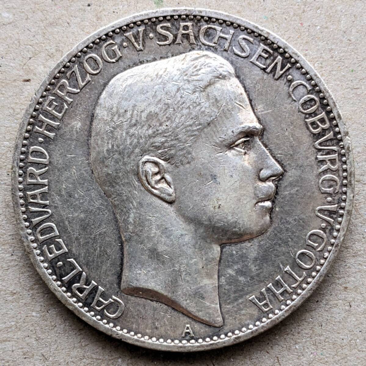 - 1907年 ドイツ ザクセン-コブルグ-ゴータ 5マルク 銀貨 EF ベルリンミント