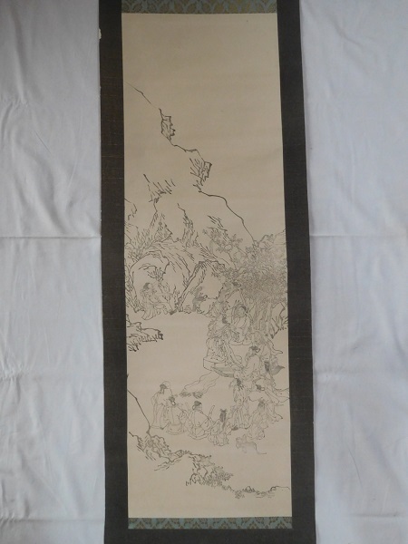 - 【版画】掛け軸 天岩戸開き図 天岩戸開図 岩戸隠れ 天照大神 天岩戸神話 日本神話 神画 神道 紙本版摺 木版