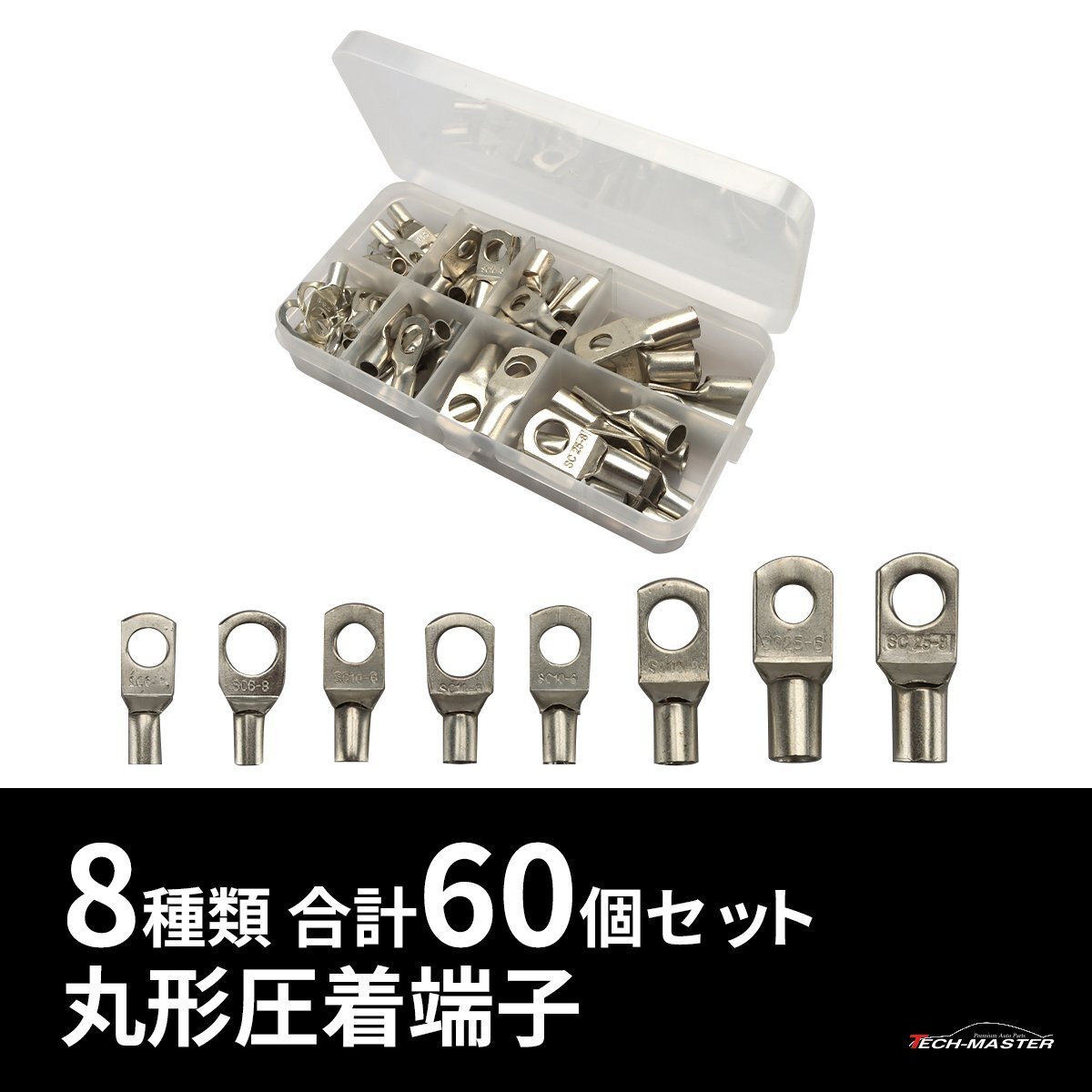 - バイク 裸圧着端子 丸形端子 R形端子 8種類 60個セット 収納ケース付き IZ513