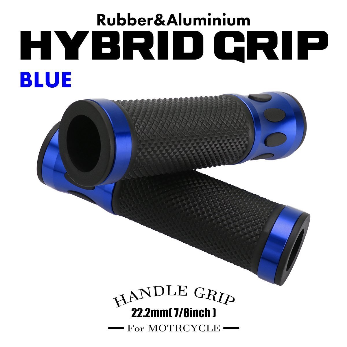 > バイク グリップ ラバー×アルミ削り出し ハイブリッドデザイン 左右セット 貫通タイプ 22.2mmハンドル用 ブルー SZ573-B