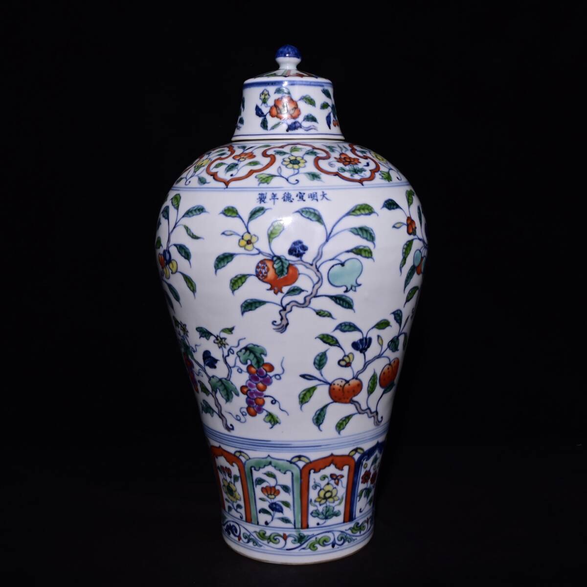 - TM9#8371【3.1】中国骨董 人間国宝 磁器【大明宣徳制五百瓜果紋梅瓶です】工芸品 施釉陶 青花磁 陶芸 精美彫 置物 收藏品