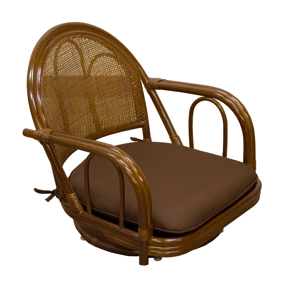 - 座椅子 ラタン 回転式 肘付きチェア ロータイプ 肘掛け 籐 和モダン ブラウン IM-13(BR)