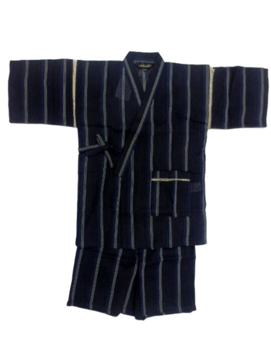 - 甚平 子供 キッズ 男の子 綿100% 日本製生地 じんべい 上下 祭 甚平 部屋着 パジャマ 子供甚平 140cm 紺地 子持縞柄 No.116