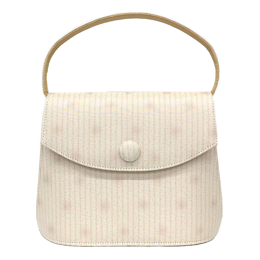 - 京やO245 正絹 和装バッグ パーティバッグ 和服バッグ やまと謹製 フジダツ 藤龍 ストライプ ドット 白 フォーマル~カジュアル 未使用