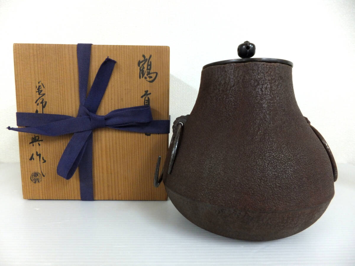 - D991 人間国宝 釜師 高橋敬典造 鶴首釜 茶釜 茶道具 共箱