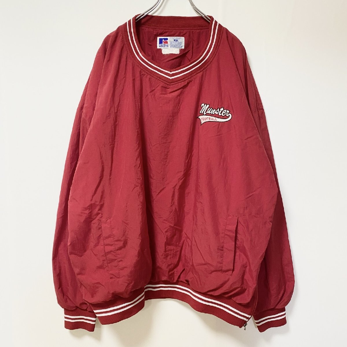 > 古着 used RUSSELL ATHLETIC 長袖刺繍ナイロンプルオーバー ウインドブレーカー フットボール 赤 XXLサイズ