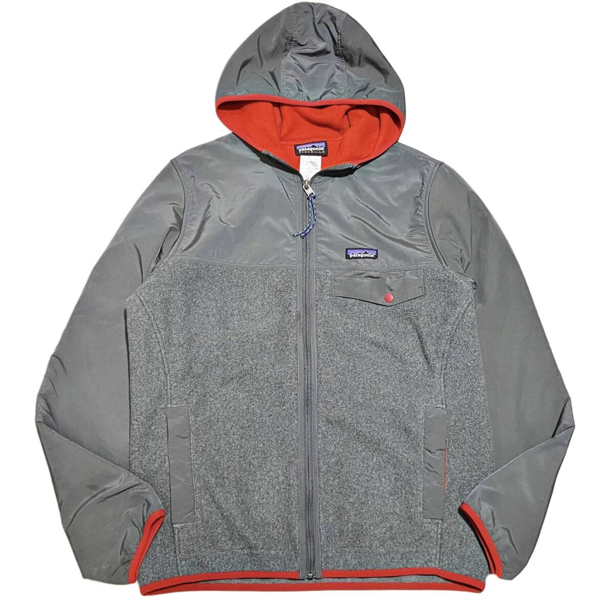 - 希少 【2014 パタゴニア PATAGONIA シェルドシンチラ フリース スナップT フーディー グレー×レッド】アメリカ アウトドア