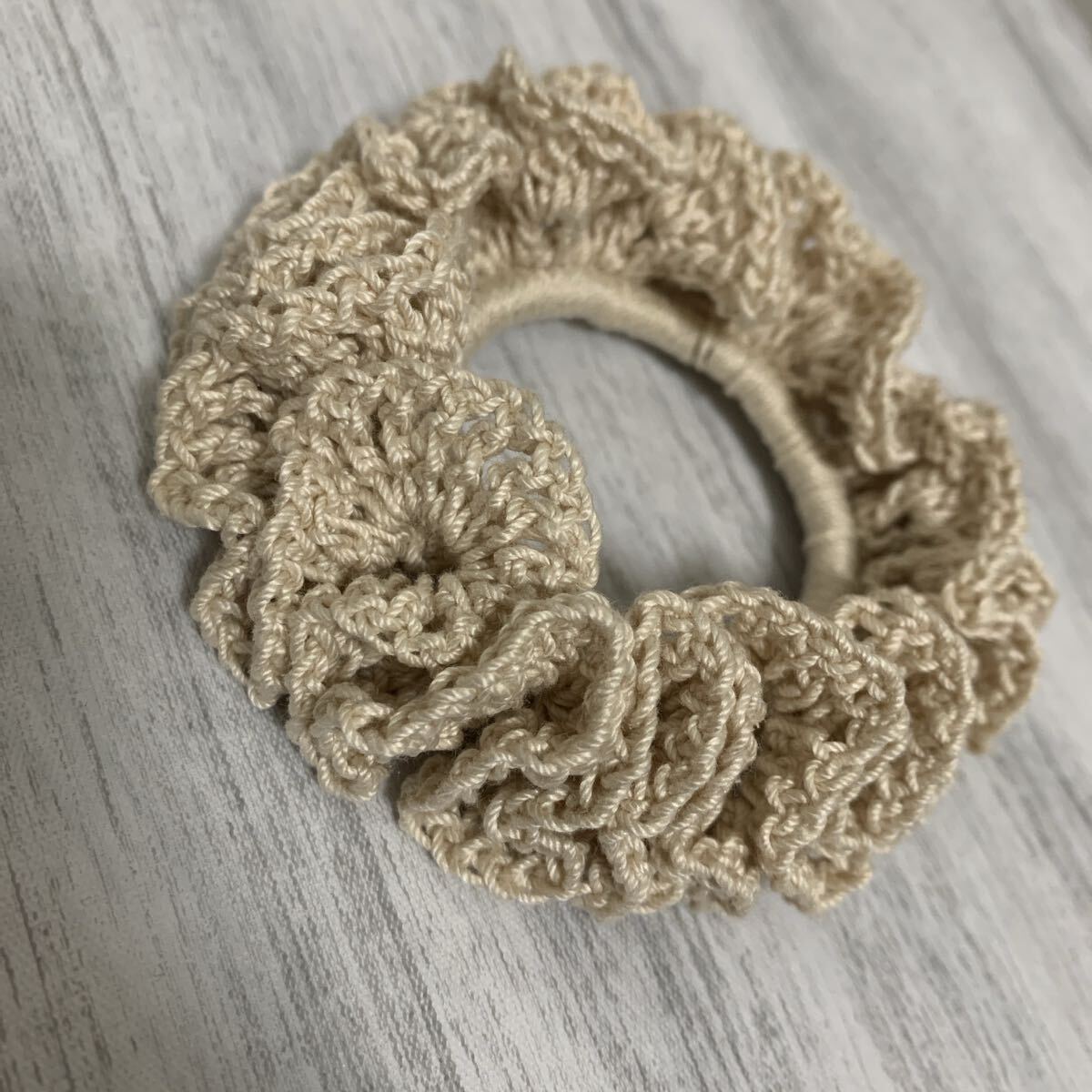 - 【d20】かぎ針 シンプル クリームベージュ レース糸 フリル シュシュ