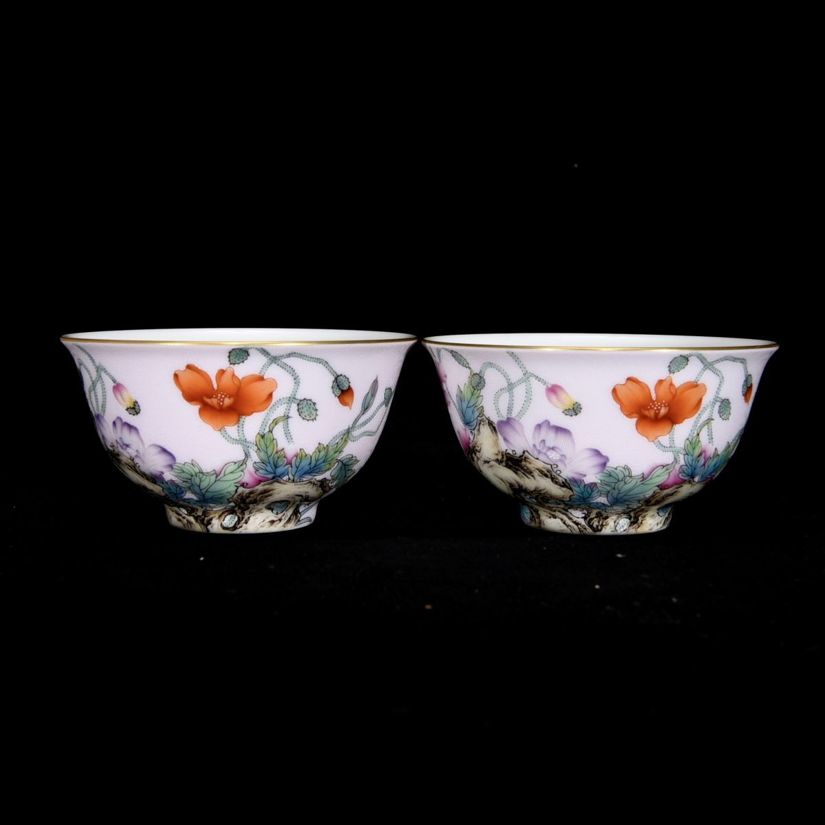 - 永し 清時代 乾隆年製 琺瑯彩 花卉紋碗 一対 古陶磁器 陶芸 皿 中国陶瓷器 唐瓷 置物擺件 古美術品 古賞物 収集 旧家蔵出 中国唐物 A212