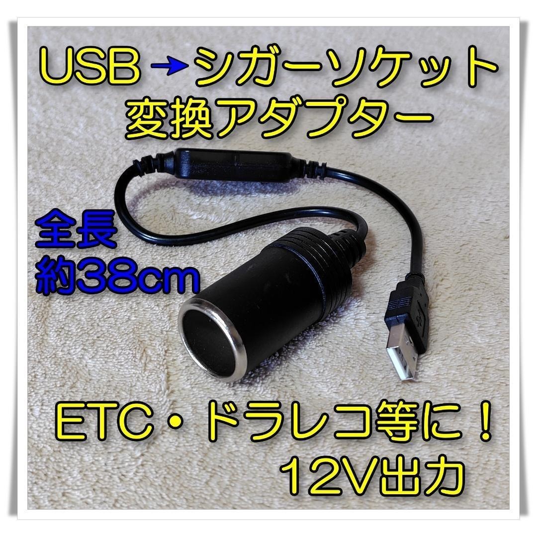 - USB シガーソケット 全長38cm 5V→12V USBポート 変換アダプター