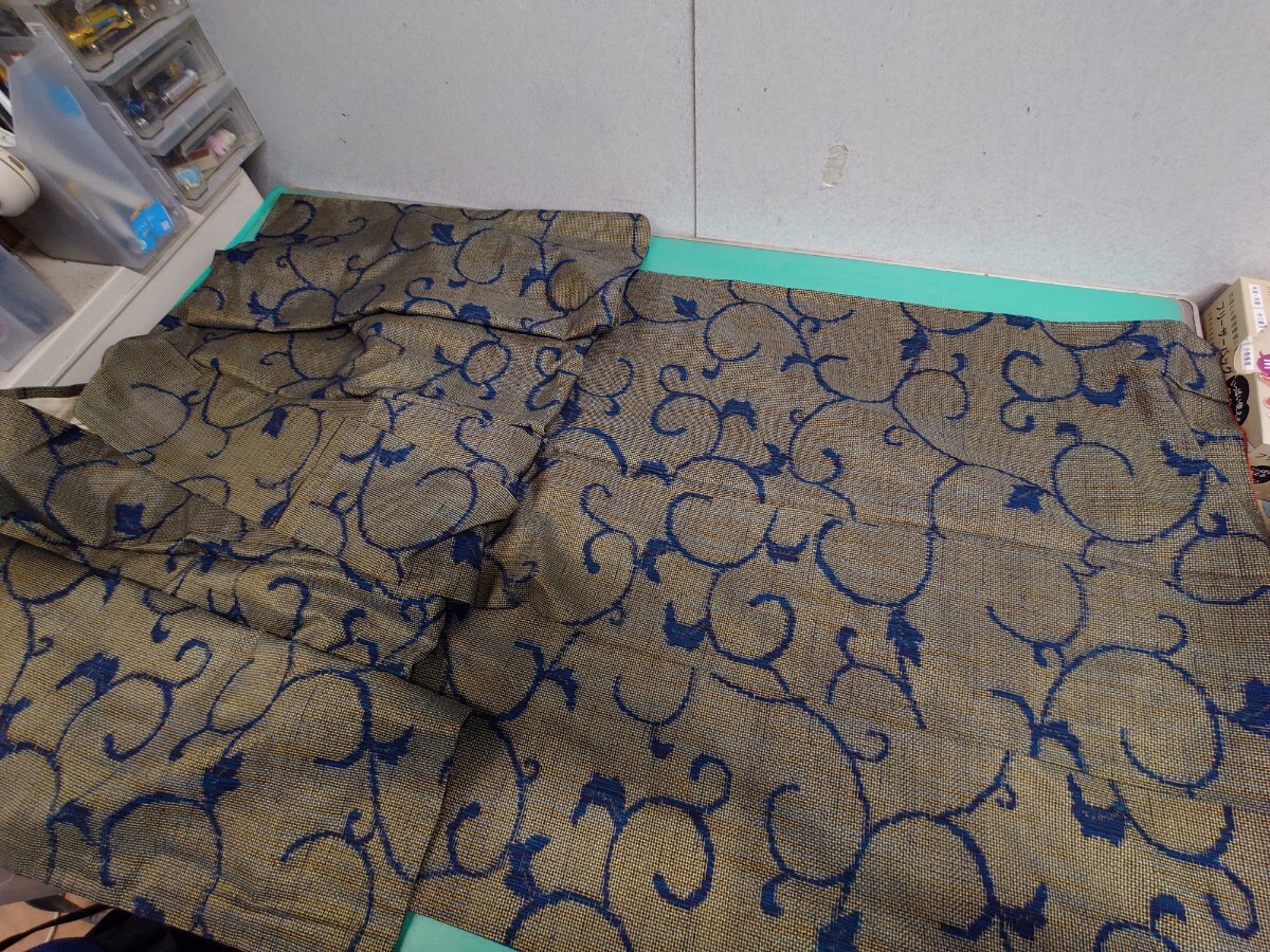 - ● 160 レトロ モダン 粋な 唐草 模様 オシャレ アンティーク 紬 着物 ①