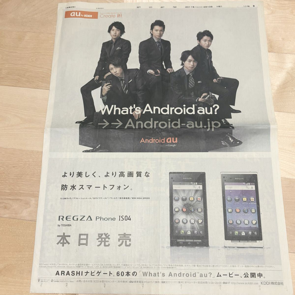 - 嵐 グッズ au 東芝 REGZAPhoneIS04 2011 新聞全面広告 大野智 櫻井翔 相葉雅紀 二宮和也 松本潤 朝日新聞 一面広告 ARASHI toshiba android