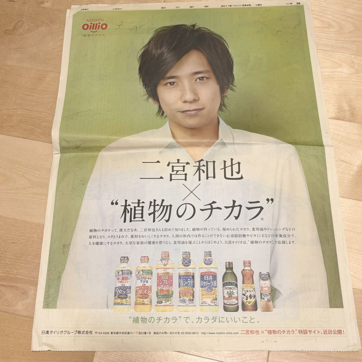 - 嵐 グッズ 二宮和也 日清オイリオ 新聞全面広告 朝日新聞 一面広告 ARASHI 平成レトロ 当時物 2011新聞 植物のチカラ NISSHIN OilliO