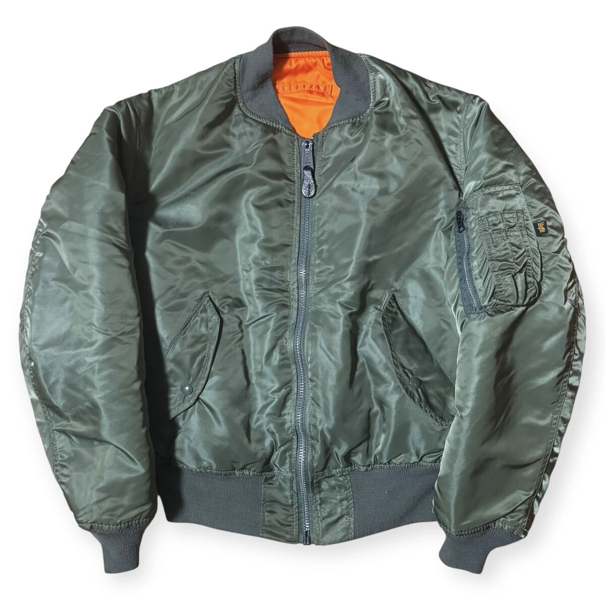 > ALPHA INDUSTRIES 90s USA製 ビンテージ MA-1 フライトジャケット 黒タグ Mサイズ セージグリーン リバーシブル