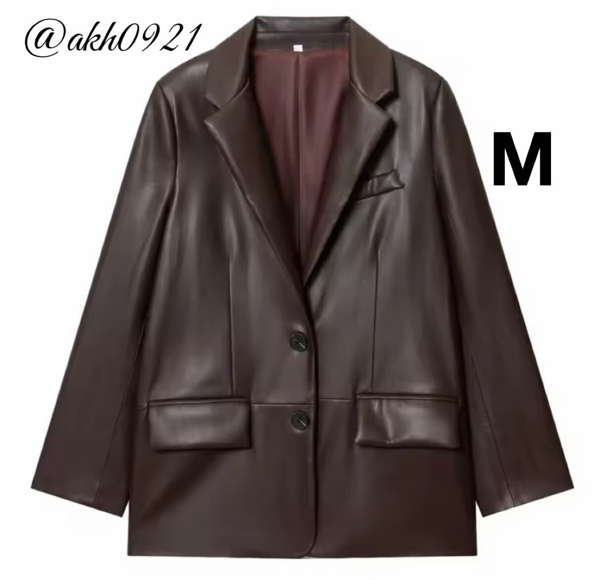- 新品★2025 秋新作★vintage ヴィンテージ レトロ フェイクレザー PU テーラードジャケット ブレザー Mサイズ レディース★ZARA 好きな方に