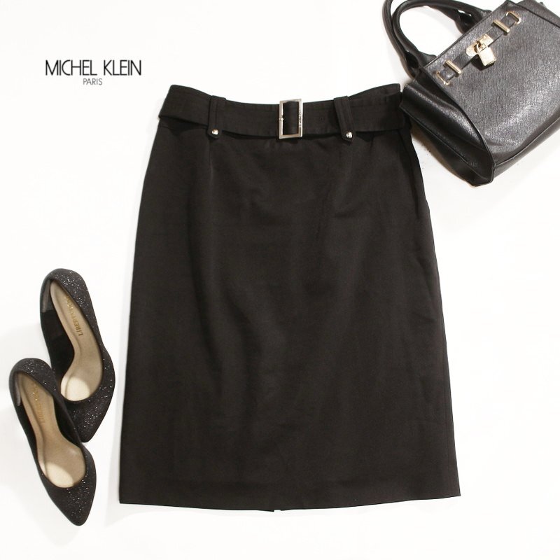 - ミッシェルクラン MICHEL KLEIN イトキン(株) 合物 艶 ポリエステル タイトスカート 11号 40 ブラック 黒 スカート オフィス 通勤 上品