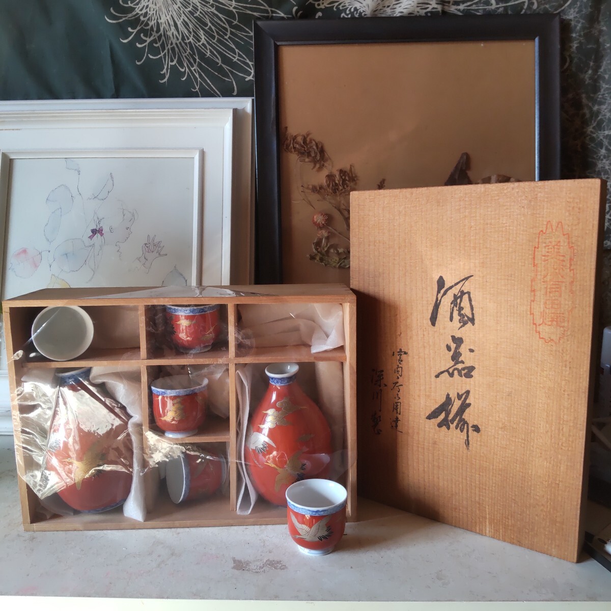 - 未開封羽鶴紋酒器セット7点深川製宮内庁御用達