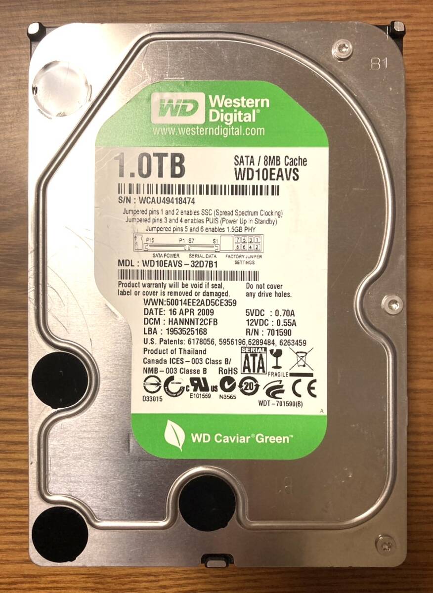 - 【状態◎】Western Digital ウェスタンデジタル WD Caviar Greenシリーズ WD10EAVS 3.5インチ HDD 1TB(日常使いに最適なHDD)