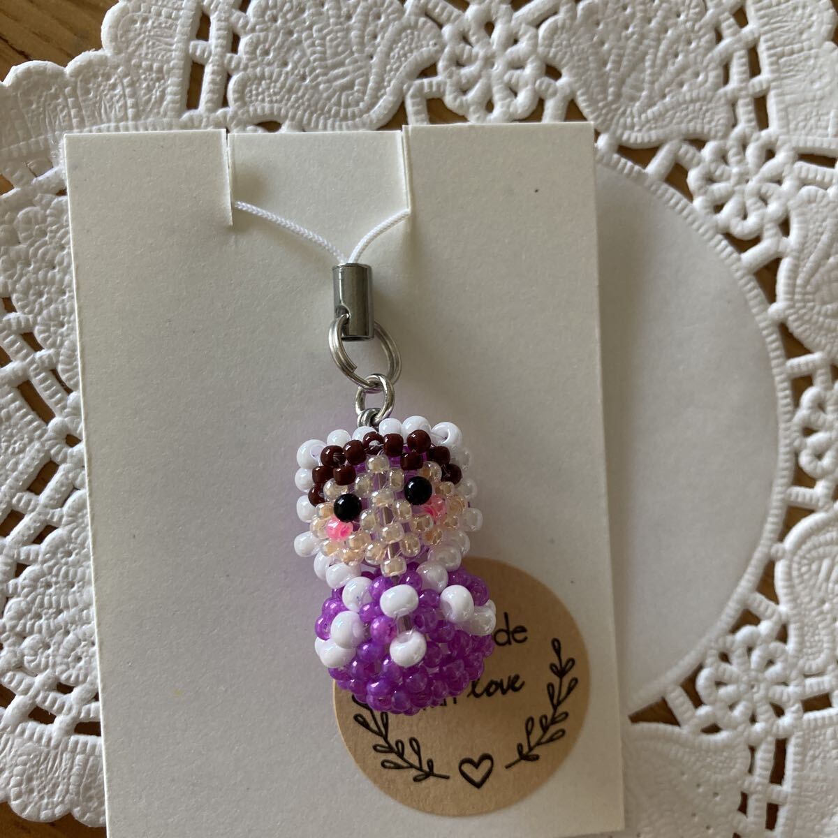 - ハンドメイド ストラップ キーホルダー チャーム 丸小ビーズ プレゼントにも マトリョーシカ風 女の子