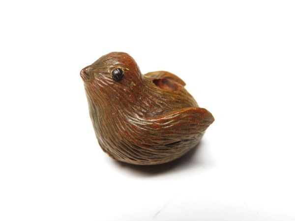 - 【11546】明治期 堤物 木製 小鳥 緒締(初品・買取品)