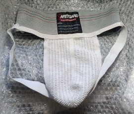 - SAFETGARD製、メンズ、スポーツ用サポーター、ジョックストラップ、フロント/V部白、ウエスト部グレー、ポリエステル85%、М~Lサイズ、