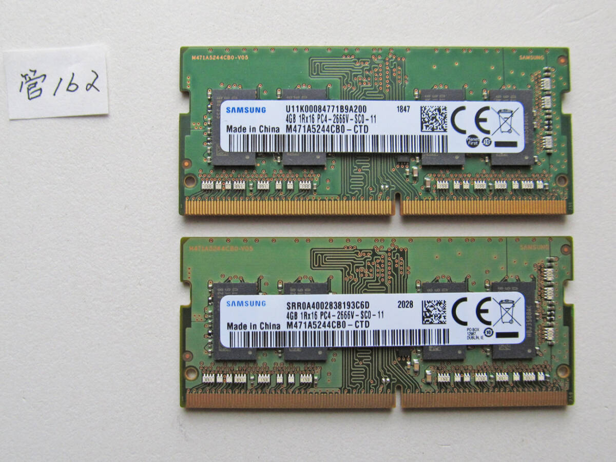 > ★送料無料!★Samsung ノートPC用メモリー★DDR4-2666 (PC4-21300) 4GB ×2枚 計8GB★動作確認済み 中古品★管162★