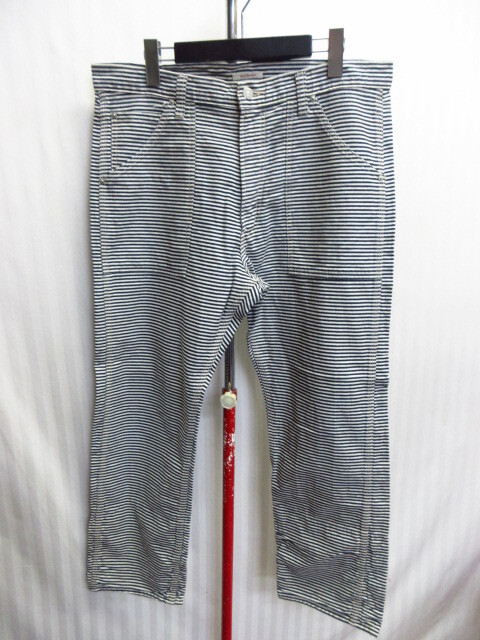 > エターナル ベイカーパンツ メンズL ヒッコリーボーダー柄ワークパンツ ワークジーンズ ヒッコリーパンツ ワークジーンズ ズボン 09032