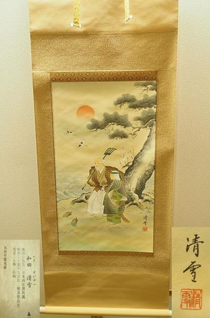 【サイズ・素材】 外寸:縦149cm 横54.5cm (軸先含まず) 【説明】 箱に経年保管されてお品です。箱に保管されていた お品です。保存状態は比較的良好です。 外箱は若干ヨゴレ等あります。 箱に長年入っていたため多少の保管シワ等あります。 お掛け頂く事で戻っていくかと思いますが現状でのお渡しになります。 ■略 歴■ 和田清雪(わだせいせつ) 墨彩会会員 日本画家無所属 岐阜県在住 美術年鑑掲載 得意…人物・仏画 昭和34年生まれ 他にも国内人気作家さんの掛軸を多数出品中です。 【ヤフーオークション 絵画の出品に関するルール改定につきまして】 ヤフーオークションでは、2017年10月25日から絵画の出品に関するルール 改定が施行されました。絵画の出品につきましては特定の作者の作品と記載 もしくは署名落款がある場合、【真作】または【模写】と明記することとなりました。 タイトルにあります分類は下記の通りになります。ご確認の上ご検討 頂きご入札をお願い申し上げます。 *【真作】 本物であると断定できる作品、真作(絵画)・真筆(書)作品のこと。 【模写】 工芸や印刷ではなく、人が書いた作品のこと。 わずかでも真作ではないと疑いのある作品は模写と表記致します。 【複製】 印刷・版画・拓本・リトグラフ・工芸作品のこと。 *【真作】の表記の出品で所定鑑定機関により万が一「真作」でなかった場合には 返品をお受け致します。 返品の落札後10日間です。返品の場合は落札代金のみ返金させて頂きます。 ご理解の程宜しくお願い申し上げます。 【シミ等につきまして】 シミ等がある場合は説明文に明記しますが画像に関しましては以下の通りになります。 軸裏側に付きましては軸上の一部のみ画像掲載 しておりますのでその画像を元に全体のシミの判断をお願い致します。 表側につきましても目立つ部分のみできる限り画像掲載しておりますが 全てを網羅する事は困難でございますので全体画像にてご判断願います。 時代経年が経過した古い軸物ですので多少なりともヨゴレシミ等ございますので ある程度のご理解とご了承お願い致します。 以上ご理解の上格安から出品致しますのでお好きな方のご入札お待ちしております。 安心してヤフーオークションをお楽しみ頂くためにも入札前に 取引のご案内をご確認ください。 《取引のご案内》←こちらをクリック 他の出品商品もご覧頂けたらとても嬉しいです。