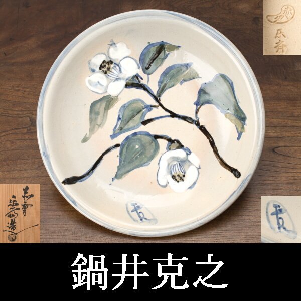 > 【千h0760】鍋井克之 絵付け 皿 幅約33cm 赤膚焼 赤ハダ 尾西楽斎 楽斎