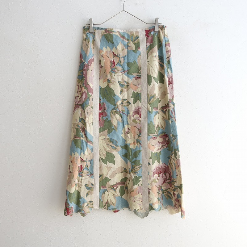 - ケイタマルヤマ KEITA MARUYAMA *リネン花柄スカート*1麻フラワー異素材切替ロングカッティング(sk25-2508-313)【80I52】