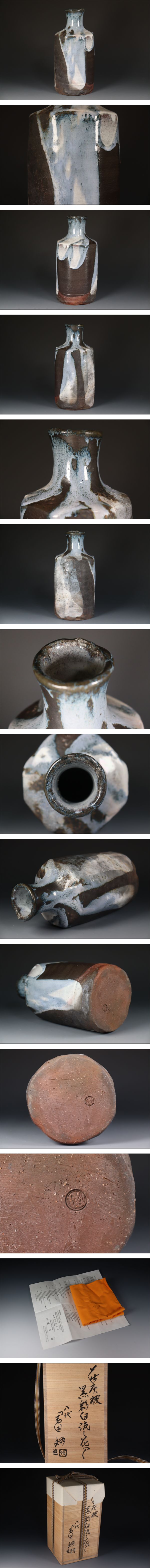 - 蔵出し品 萩焼 八代岡田裕 萩灰被 黒彩白流し花入 A637