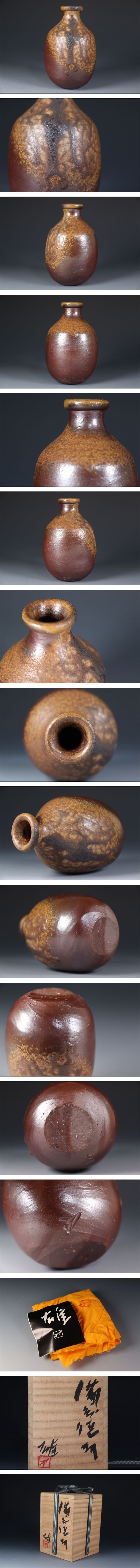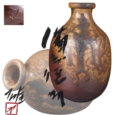 - 蔵出し品 備前焼 人間国宝 藤原雄 胡麻垂れ 徳利 最晩年作 A648