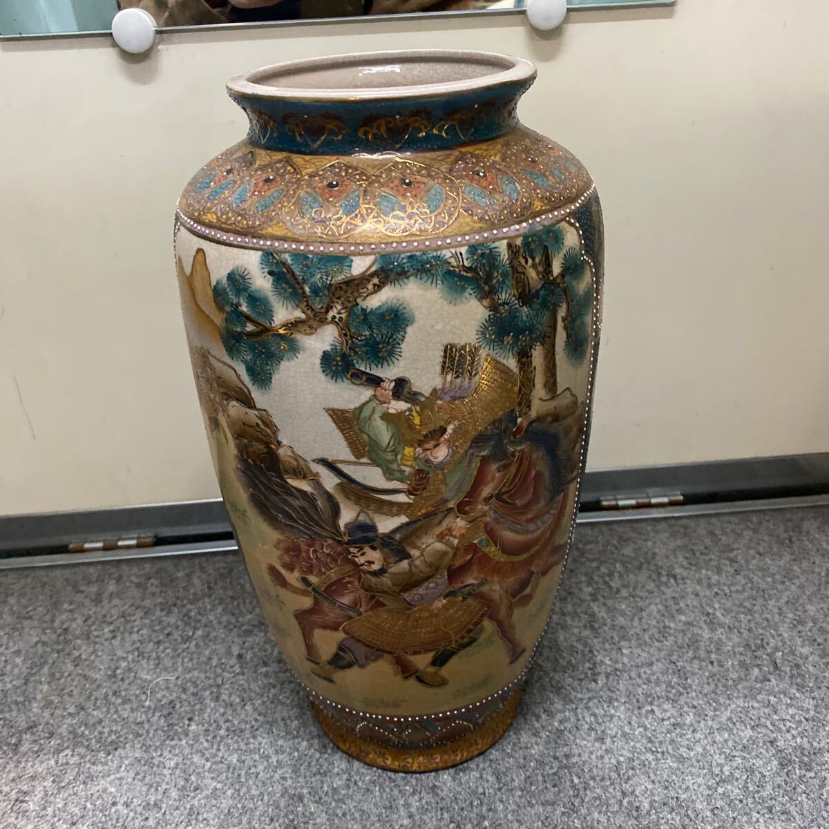 - 薩摩 武士図 骨董品 オブジェ 置物 玄関 床間飾り 豪華 粉彩 沈香壺 古玩 中国 インテリア 古美術 花瓶 花器